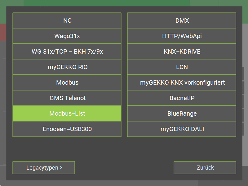 - Wählen Sie „Modbus-List“ aus.
