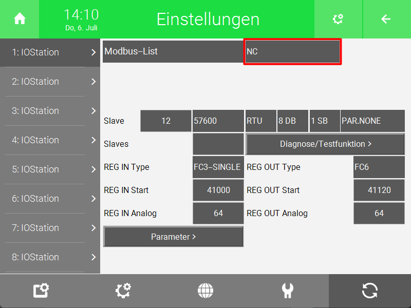 - Drücken Sie auf die Schaltfläche „NC“ neben „Modbus-List“.