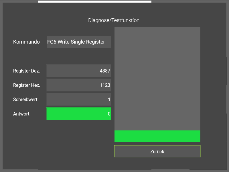 Beckhoff unterstützt folgende 2 Modbus-Modi: „Standard“ und „Fast“. Der Fast Modbus Modus ist ein optimiertes Modbus-Stack von Beckhoff, der nur in kleinen lokalen Netzwerken eingesetzt werden soll. Dieser unterscheidet sich vom Standard-Modbus in seiner erheblich geringeren Reaktionszeit. Beim Standard Modbus Modus ist die Reaktionszeit ca. 9 ms bei Minimalregisterbelegung (1 Register), beim Fast-Modbus ist diese bei 1ms. Es besteht jedoch eine Abhängigkeit zwischen der Registeranzahl und der Reaktionszeit. Um diesen Fast-Modbus zu aktivieren, melden Sie sich als Konfigurator an und wechseln in die Beckhoff IO-Station (Haus> grün-blaue Pfeile>IO-Station). Tippen Sie auf den Button „Testing >>“ und geben Sie folgende Werte ein: