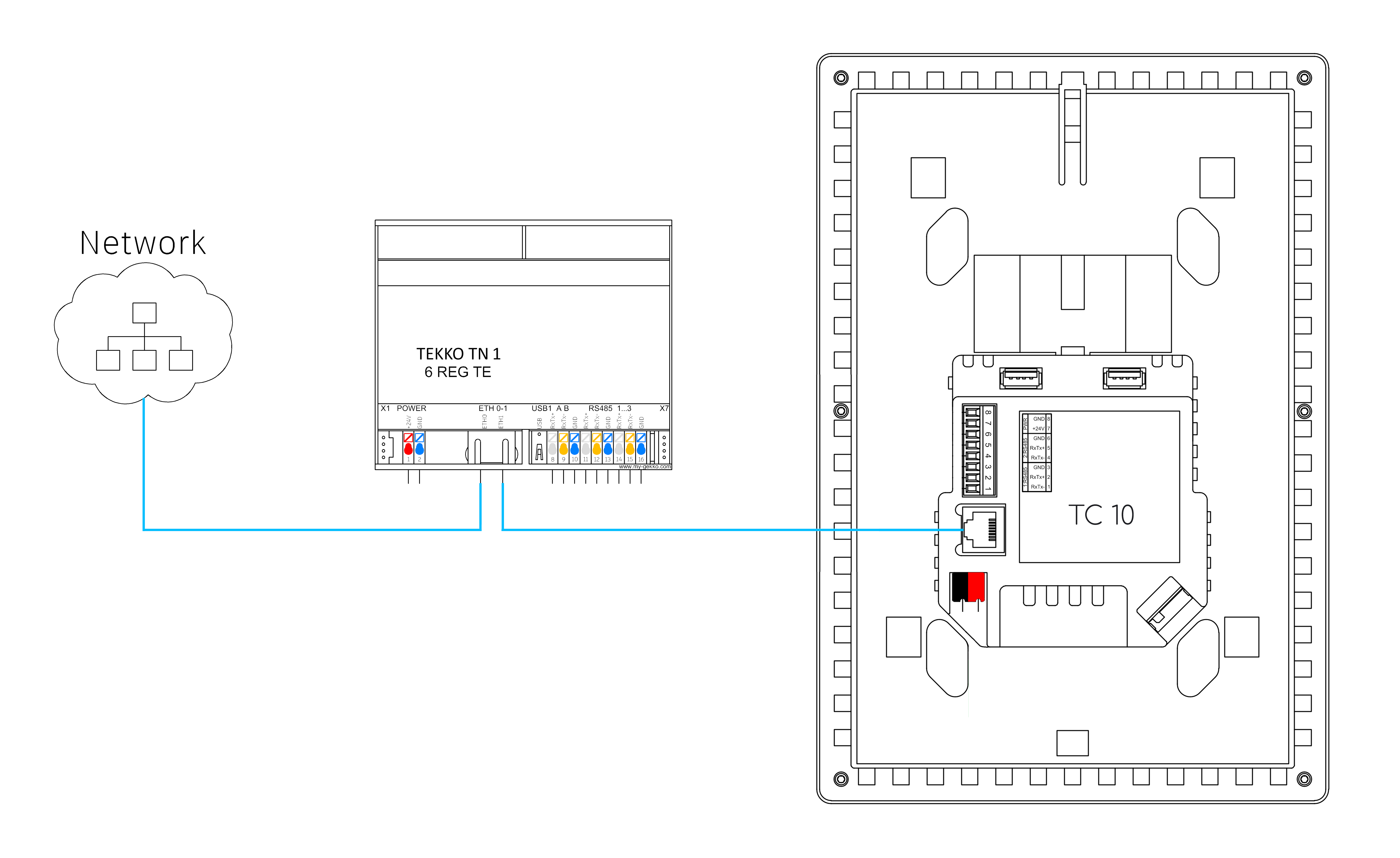 - Der zweite Anschluss des TEKKO TN 1 sollte an das Netzwerk angeschlossen werden.