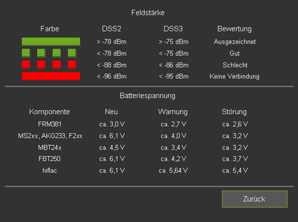 In der Detailübersicht einer Funkkomponente werden Informationen wie die Batteriespannung, Feldstärke, Funküberwachung etc. angezeigt.